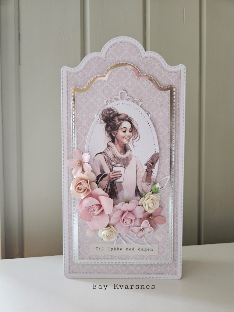 Her har jeg laget et kort til henne. Ikke alltid jeg har en plan om hvordan kortene skal bli, så de blir til mens jeg holder på. 🌸